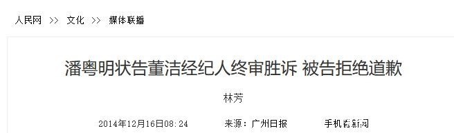 部分参考资料:离年后,“董洁承认自己当年任性”冲上热搜,潘粤明深夜发文回应——鲁中晨报潘粤明状告董洁经纪人终审胜诉 被告拒绝道歉——人民网